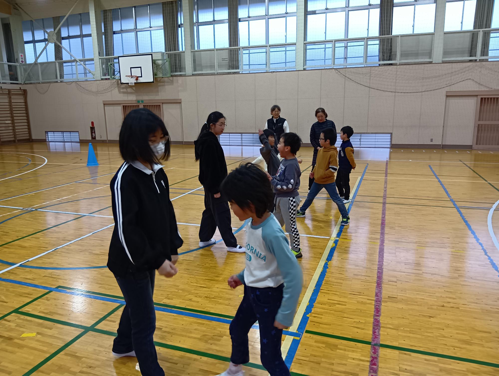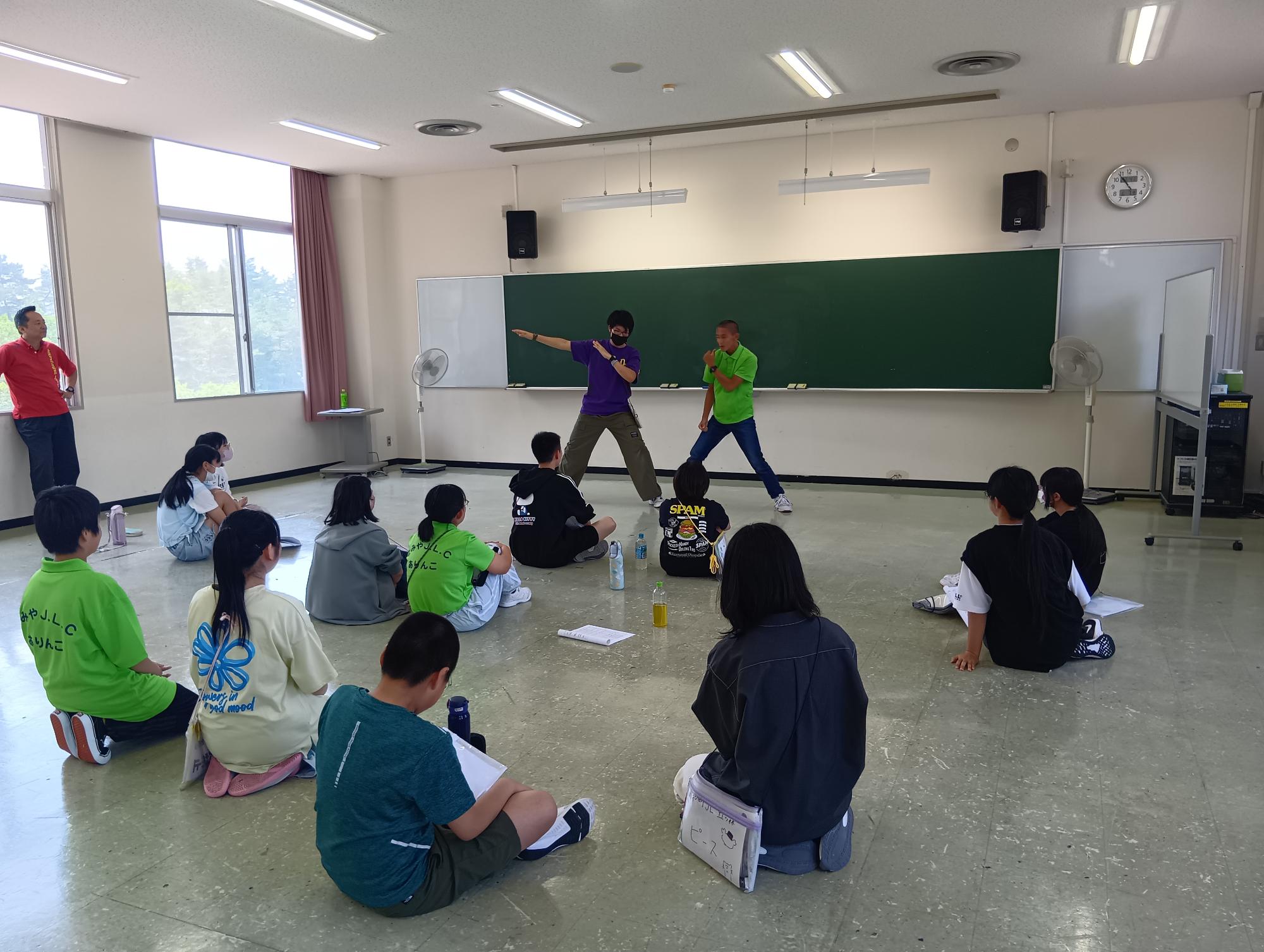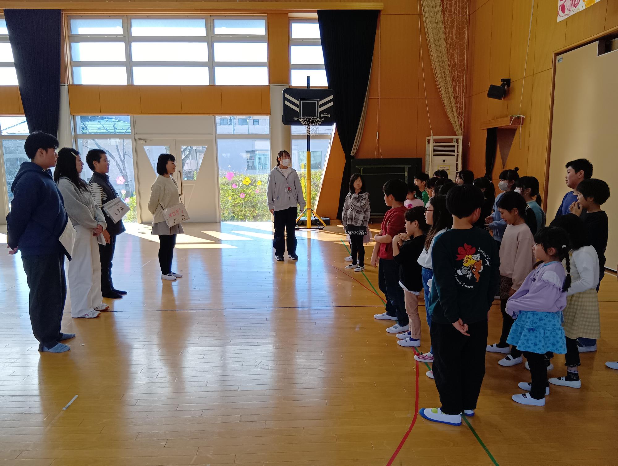 先輩からの指導の後、新JLたちも前に立ち、覚えたゲームを披露しました。