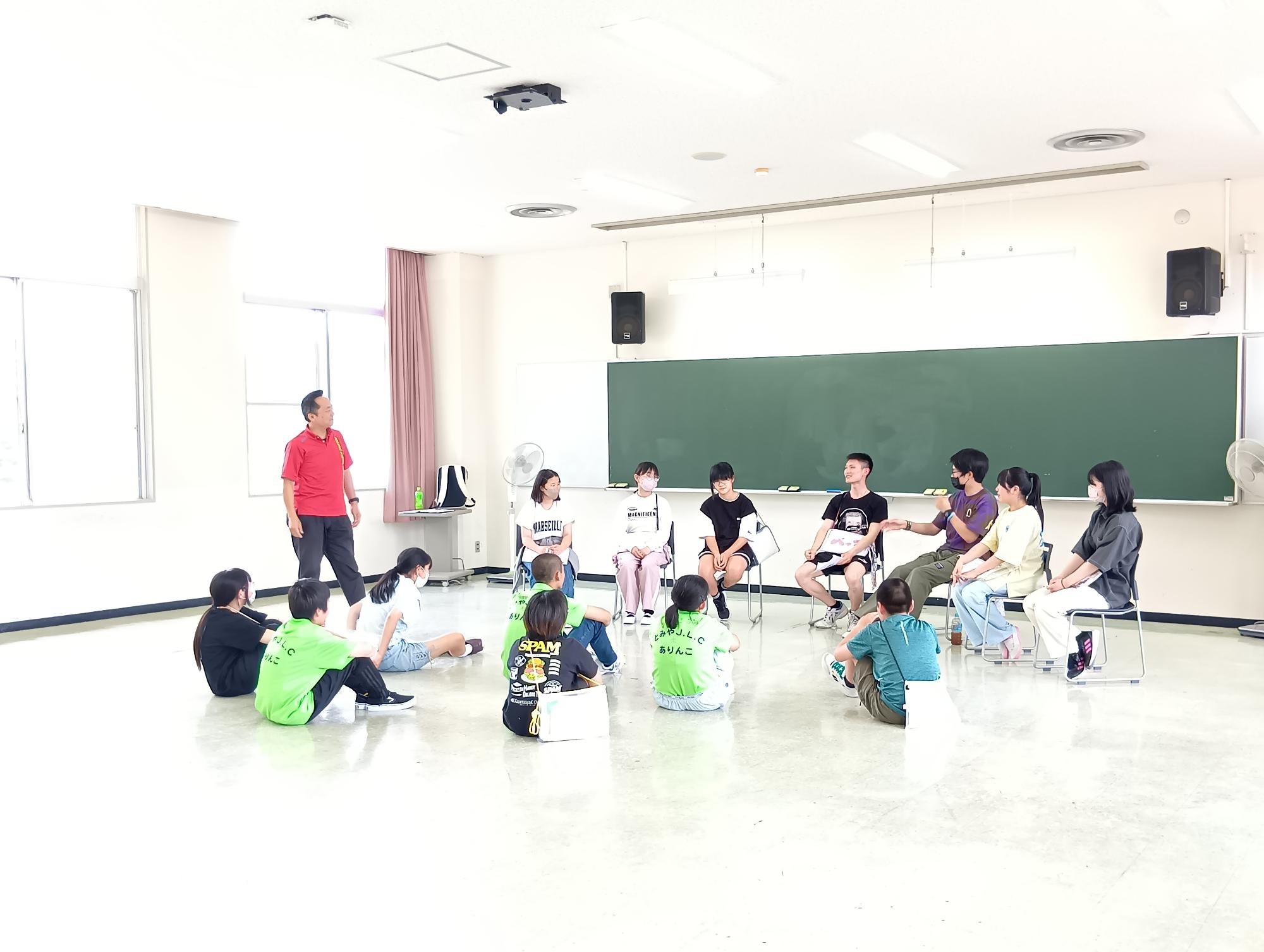 JLの地域での役割や心構えを学ぶとともに、子どもたちへの接し方や様々なゲームを学びました。