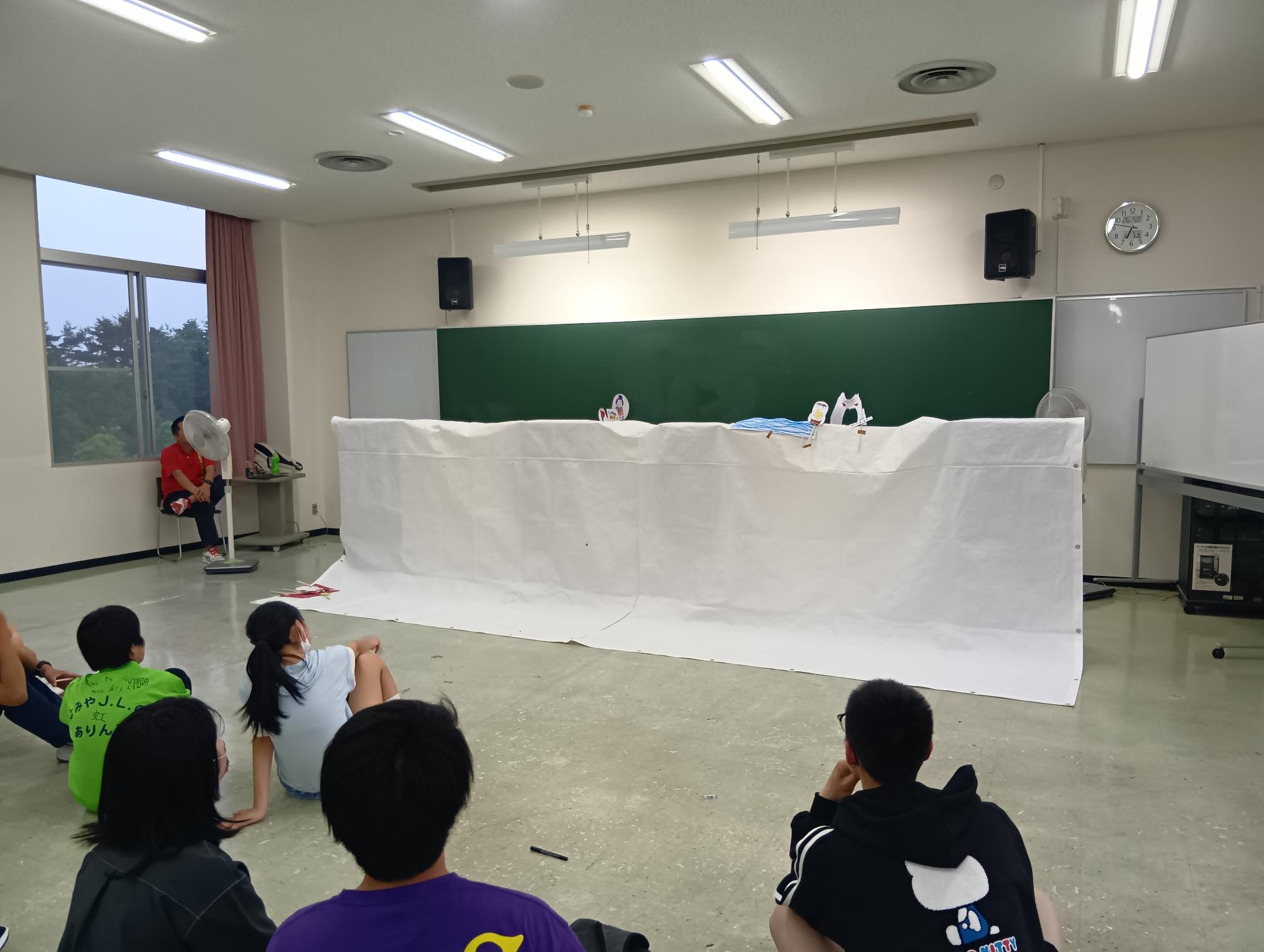 ペープサートでは、グループごとに協力してオリジナルの昔話を作りました。