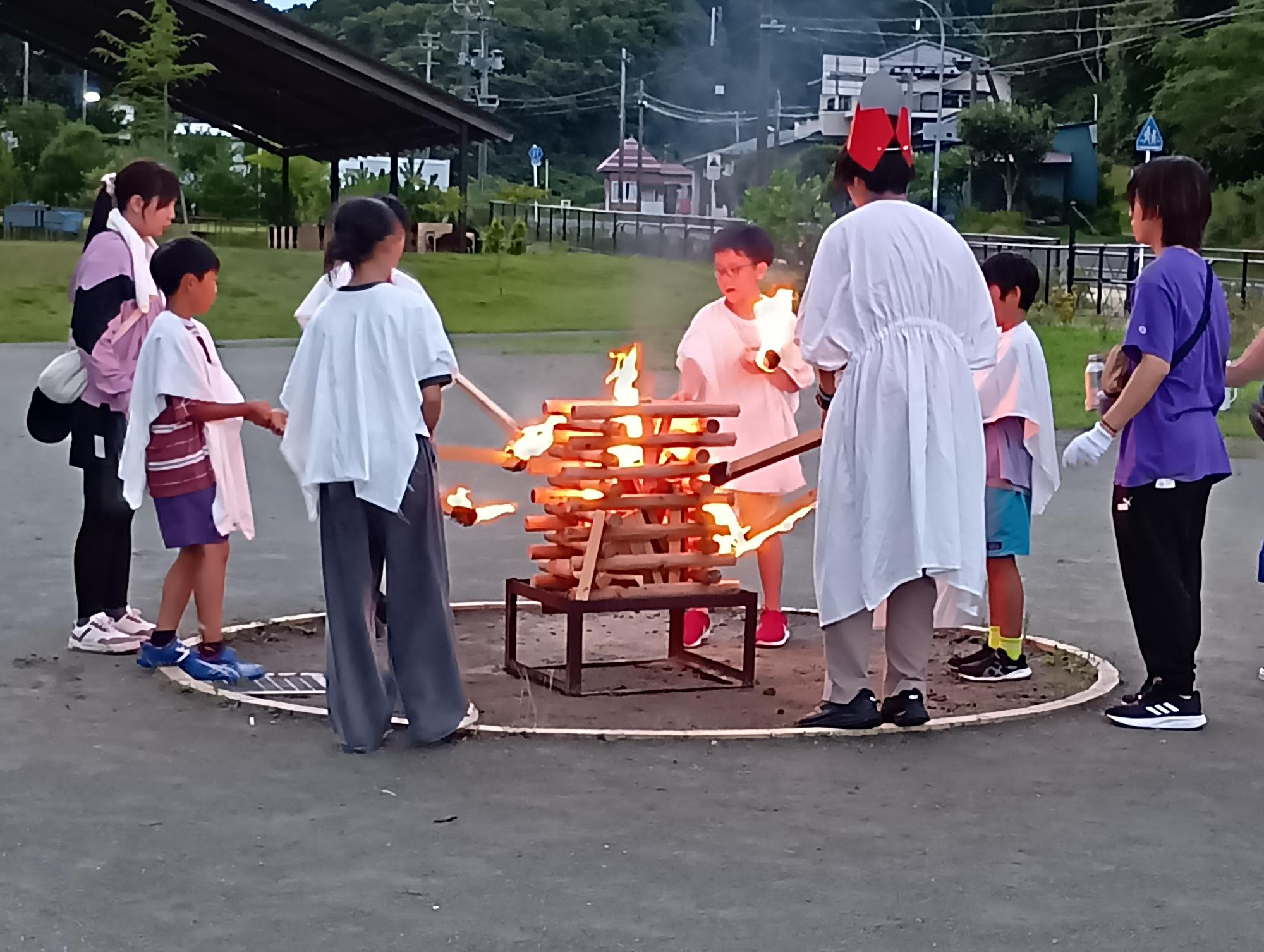 雨が降る時間もあり、予定通りできるか心配していましたが、ちょうど雨が止み、無事にキャンプファイヤーができました。